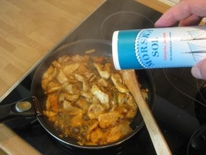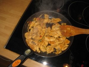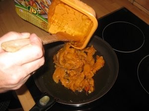 Vzemite kuhalnico in Piščančji file z okusom Azije nasujte v ponev.