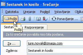 V polje Za vpišite prejemnikov e-poštni naslov, v polje Zadeva vpišite zakaj se gre in v polje Mesto lokacijo, kjer boste sestankovali.