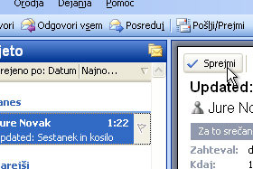 Ko jo bo potrdil (kliknil na gumb Sprejmi) boste dobili obvestilo in oba udeleženca bosta imela shranjen opomnik v koledarju.