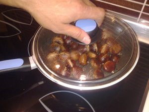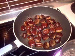 Kostanj se peče okoli 15 do 20 minut zato kostanj na ponvi vsake toliko časa premešajte.