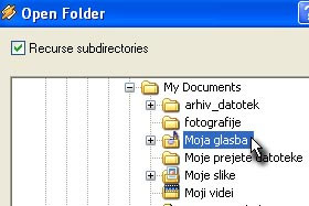 Odpre se vam okno Open Folder. Izberite mapo, kjer imate shranjene glasbene datoteke in potrdite na gumb OK.