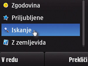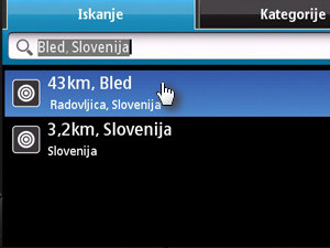 V oknu za iskanje vpišite ulico, mesto ali kraj in potem spodaj pri iskalnih zadetkih izberite želeno destinacijo.