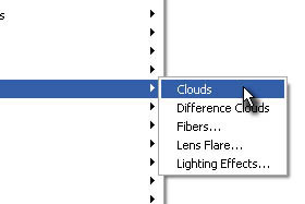 Potem pa kliknite na Filter, Render in izberite Clouds.