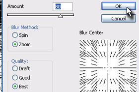 V novem oknu določite Amount 80, Blur Method Zoom in Quaility Best. Potrdite spremembe na gumb OK. |