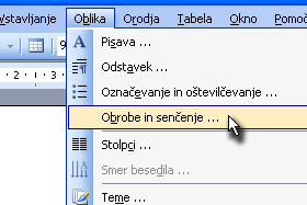 Kliknite na Oblika in izberite Obrobe in senčenje.