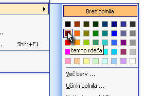Kliknite na Oblika, Ozadje in izberite poljubno barvo. Jaz sem določil temno rdečo barvo. |