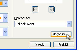 Nove možnosti se prikažejo, kjer bomo nastavljali rob celotne strani.
