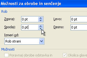 Nastavil sem rob na vseh straneh 0 pt, kar pomeni čisto do roba dokumenta.