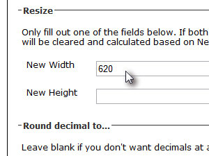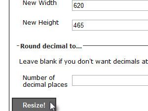 ![]() Kliknite nato še na gumb Resize! in v polje New Height se vam prikazala nova proporcionalno spremenjena višina slike. V mojem primeru imam nove dimenzije 620 in 465 slikovnih pik. Če ne razumete, kaj pomeni proporcionalno spreminjanje dimenzij slik, pa brez skrbi vprašajte na forumu.