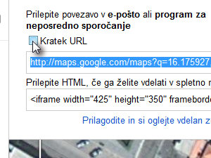 Google zemljevidi vam ustvarijo povezavo, katero označite in kopirate, mi pa bomo povezavo raje skrčili.