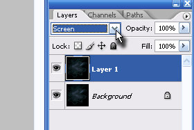 Potem pa dupliciranemu layerju preko izbrinika določite Screen. |