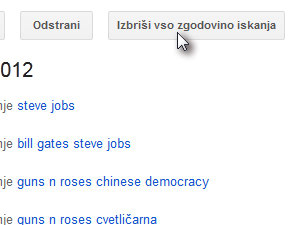 Če želite vso zgodovino iskanja v Google iskalniku sedaj pobrisati, kliknite na gumb Izbriši vso zgodovino iskanja.