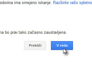 Google je tudi avtomatsko ustavil beleženje zgodovine iskanja.