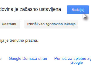 Če bi radi ponovno začeli z beleženjem, kliknite na gumb Nadaljuj. Dobro je tudi vedeti, da naj bi Google v mesecu marcu uporabil zgodovino vseh uporabnikov za tržne namene in zgodovine iskanja naj ne bi mogli več pobrisati. |