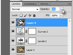 Opacity layerju nastavite na okoli 8% (glej sliko) ali po želji.