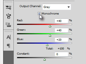 Kliknite zgoraj na Layer, New Adjustment Layer in izberite Channel Mixer...