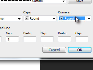 Nato lahko določite obliko vogala preko izbirnika v polju Corners.