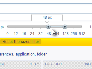 Prav tako lahko nastavimo velikost oz. dimenzijo ikon, ki jih iščemo.