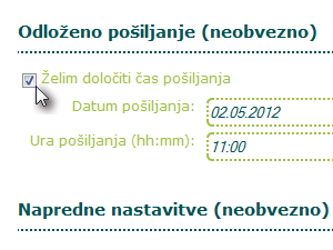 Nastavite lahko tudi uro, ob kateri bodo prejemniki dobili vabilo v obliki SMS sporočila.
