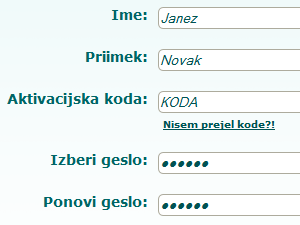 V obliki SMS sporočila smo prejeli tudi aktivacijsko kodo, ki jo vpišemo v ustrezno polje. Nato potrdite registracijo. |