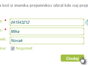 Vpišemo podatke o prejemnikih in jih dodamo s klikom na gumb Dodaj.
