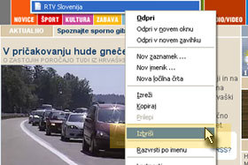 če želite spletno stran izbrisati iz zaznamkov, kliknite nanjo z drugim gumbom na miški in izberite Izbriši!