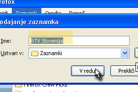 V polje Ustvari v pa izberemo mapo, kjer bomo stran shranili (jaz bom pustil Zaznamki). |
