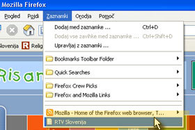 Sedaj imamo spletno stran shranjeno. Nahaja se pod Zaznamki (kliknite zgoraj na Zaznamki in tam se tudi nahaja spletna stran, ki ste jo shranili).
