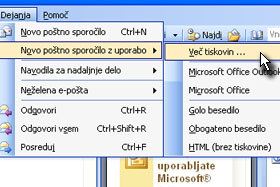 Kliknite na Dejanja, Novo poštno sporočilo z uporabo in izberite Več tiskovin ...