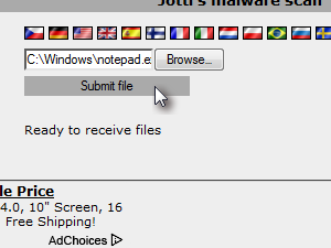 Kliknite gumb Submit file, da boste datoteko prenesli na strežnik, kjer bo preverjena iz strani večih protivirusnih programov.