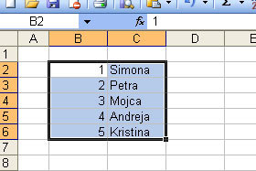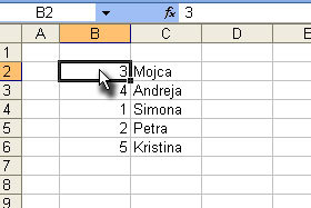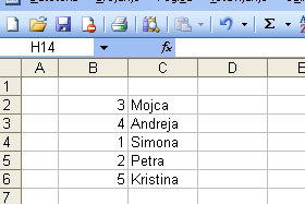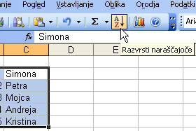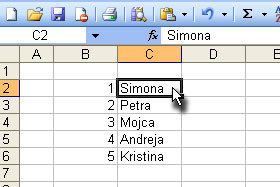Sedaj pa označite celico, kjer je vpisano ime Simona.