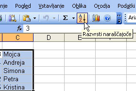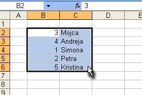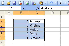 Začeli ste označevati iz desnega stolpca, ker boste tokrat razvrstili po abecednem redu celice z imeni. |