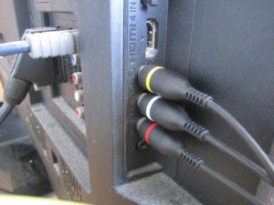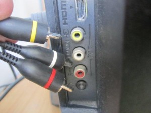Rumena barva predstavlja sliko, bela in rdeča pa zvok (stereo).