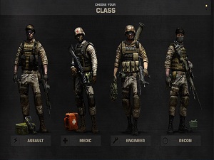 Nato je potrebno izbrati vrsto svojega vojaka. Na voljo so 4 vrste. pri vsakem vidimo, kaj ima pri sebi.