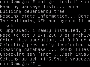 Vnesemo ukaz apt-get install ssh ter pritisnemo ENTER.
