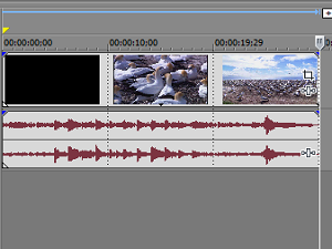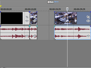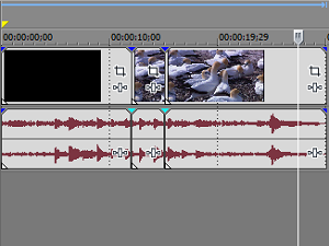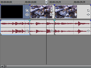 Sedaj kliknemo na desni rob sredinskega dela posnetka in pritisnemo tipko Ctrl. Miško povlečemo do začetka 3. dela posnetka.
