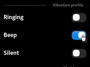Pritisnite na profil Beep, kateremu smo tudi prej nastavili vibriranje. |