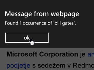Na vrhu zaslona se prikaže obvestilo, koliko takih nizov v besedilu na spletni strani, je bilo najdenih. Tapnite na gumb ok in si jih oglejte.