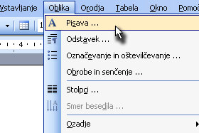 Kliknite na Oblika in izberite Pisava ...