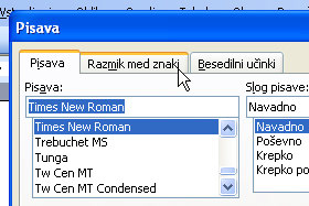 Odpre se okno za določanje pisave.