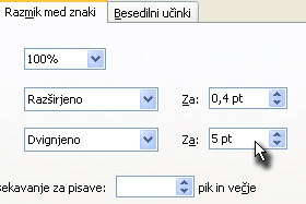 Tukaj določamo razmik med črkami v eni vrstici.