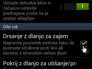 Nato pa na novi strani spodaj označite Drsanje z dlanjo za zajem.