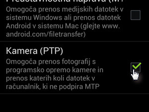 Označite sedaj Kamera (PTP), ki bo omogočala enostaven prenos med vašim telefonom in računalnikom.