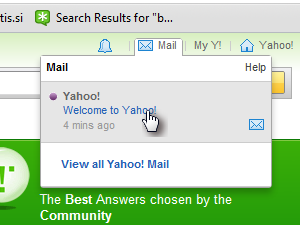 Če kliknemo na sporočilo nas preusmeri na Yahoo! Mail poštni nabiralnik. Tu lahko prejemamo in pošiljamo e-pošto.