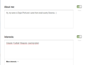 Na desni strani, kjer sta podobi človeka, kliknemo na drugo, pod čimer piše Edit. Tu lahko napišemo kaj o sebi, potem pa še hobije.