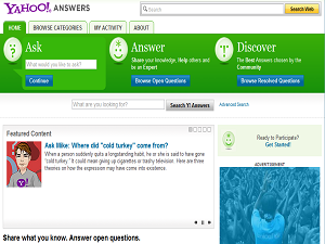 Yahoo! Answers je portal na katerem sprašuješ in odgovarjaš. Za odgovor dobiš točke (ali pa tudi ne) s katerimi napreduješ v višje stopnje.