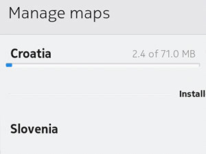Prenos zemljevidov deluje le preko Wi-Fi omrežja.