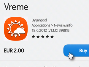 Prikaže se vam opis aplikacije, kjer pritisnite na gumb Buy.
