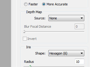 ![]() Ker ima filter Lens Blur več nastavitev, je težko vse spraviti v eno okno. |