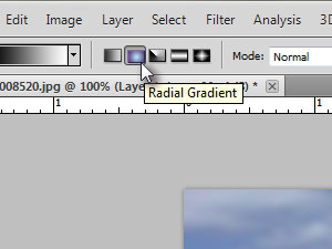![]() Zgoraj v orodni vrstici nastavite Radial Gradient. |